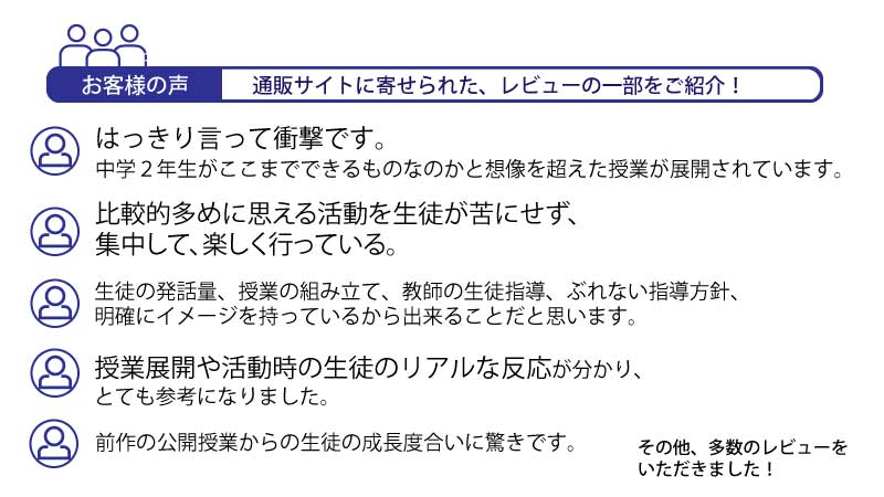 前半に4技能をバランスよく習得できるように配置した帯活動を行い、後半の言語活動の際に発話し易い雰囲気づくりと発話を自動化するベースづくりを行います。